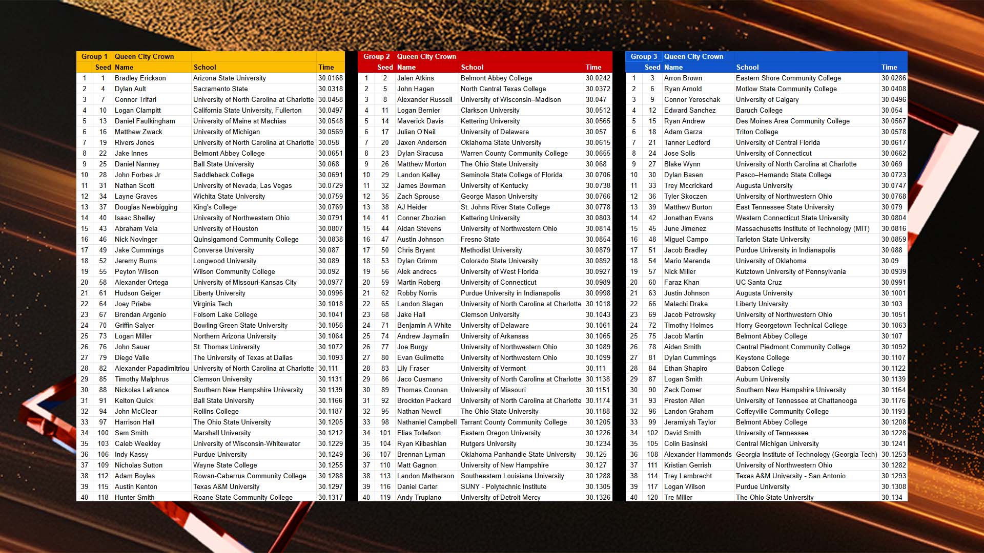 Arizona State University’s Bradley Erickson laid down the fastest lap, a time of 30.017 seconds. The gap down to 120th was only 0.117 seconds, as The Ohio State University’s Tre Miller was the last to qualify in with a time of 30.134 seconds. That’s just about a difference of 10 yards on a standard football field. By the standards of a standard NASCAR Craftsman Truck, that distance is under two truck lengths. Simply put, these times were super close.