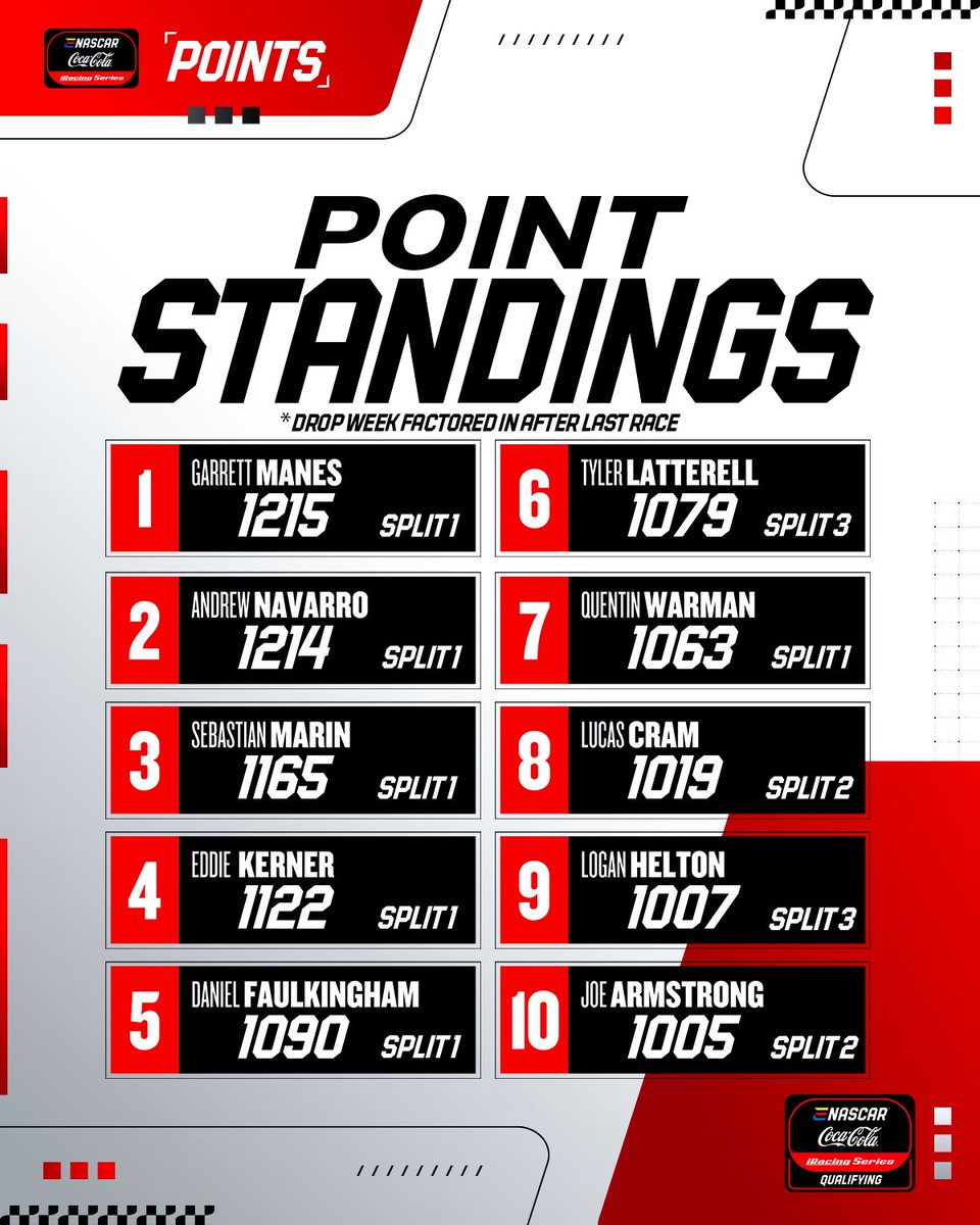 A number of drivers down to fourth split find themselves in the rankings after three races, including names like Tyler Latterell, Joe Armstrong, Logan Helton, and Aiden Bierlien. Just on the outside is NASCAR Cup Series competitor Carson Hocevar, who has had two fantastic races and finishes in second split. That’s not to say a lot of drivers from the top aren’t doing well, as the Top Split competitors are in the top-five spots after three weeks.