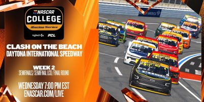 The Clash on the Beach, the second eNASCAR College iRacing Series Tournament powered by the PlayVS College League, will conclude on Wednesday night at Daytona International Speedway. Week 2 of the Tournament includes the Semifinals, Semifinal Last Chance Qualifier, and the Final Round. $7,000 in scholarship prizes are on the line, with the winner in … Read the Rest »