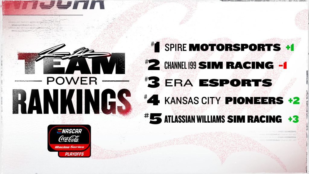 With Parker White waking up for the playoffs, as he did last season, Atlassian Williams Sim Racing is one of two teams breaking back into the top-five in the Power Rankings this week. Casey Kirwan’s Kansas City Pioneers are the other team, both propelled by their top driver finishing inside the top-five and being in the top-four in the playoff standings as it stands.