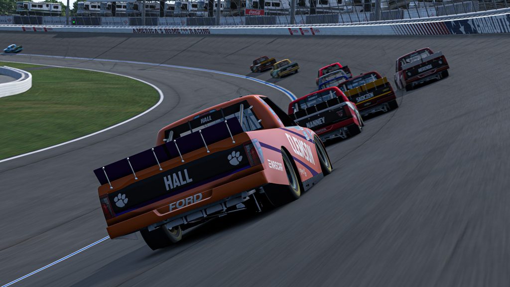 Yeroschak and Basen led the field to the green flag, the longest race of the Tournament, a 50-lap battle in NASCAR’s backyard. With caution flags on the table for the first time in the Tournament, that meant that pit strategy could also be in play should the race get slowed.
