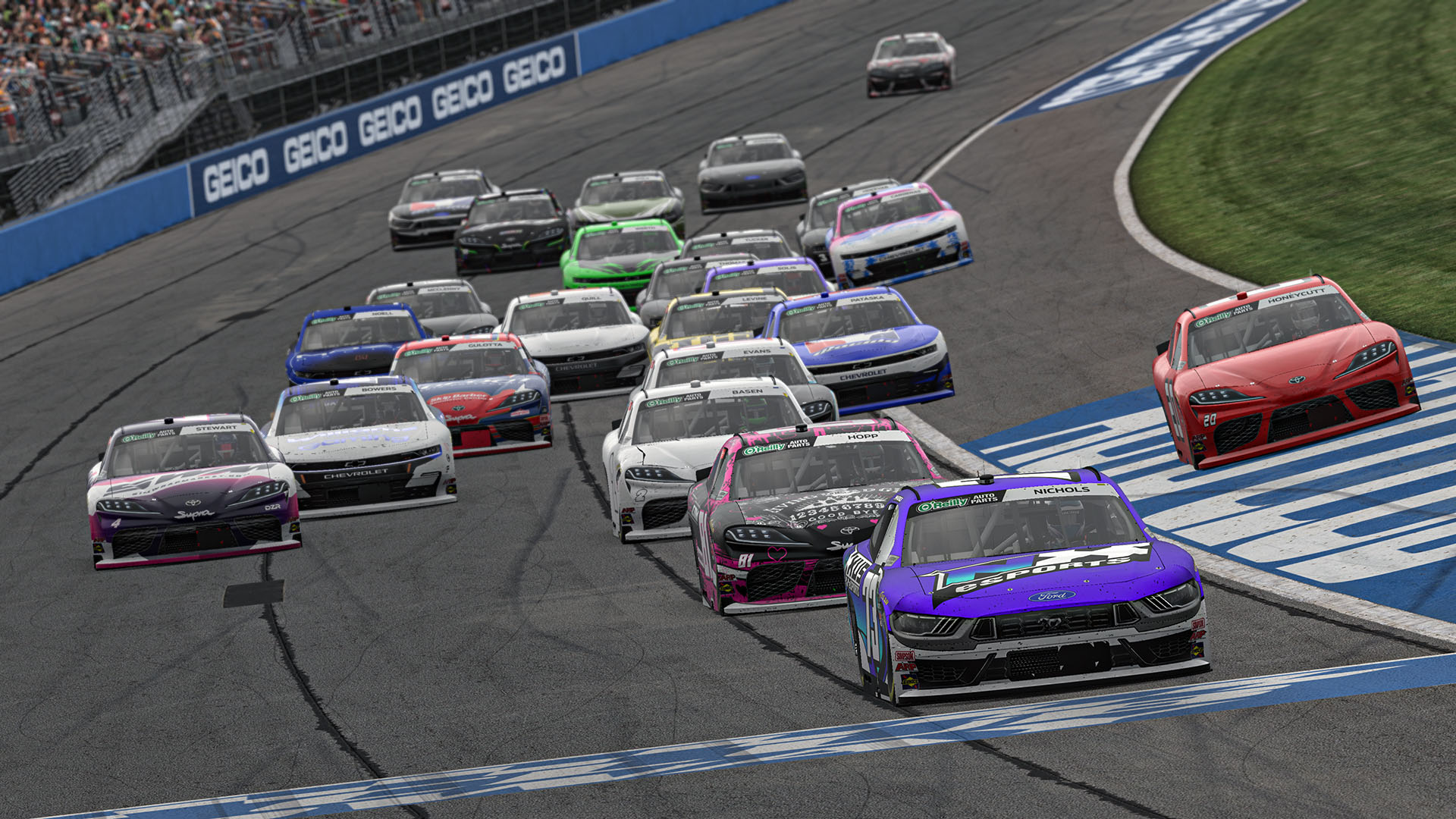 Joe Armstrong, Dylan Basen, Tyler Garey, Seth Noell, and NASCAR Craftsman Truck Series competitor Kaden Honeycutt were all under a blanket for the lead with under five laps to go. With three laps to go, the second caution of the day flew for an incident involving Noell, Garey, and Basen. They all collected it, but this would begin a sequence of events that would ultimately lead to Nichols taking the win.